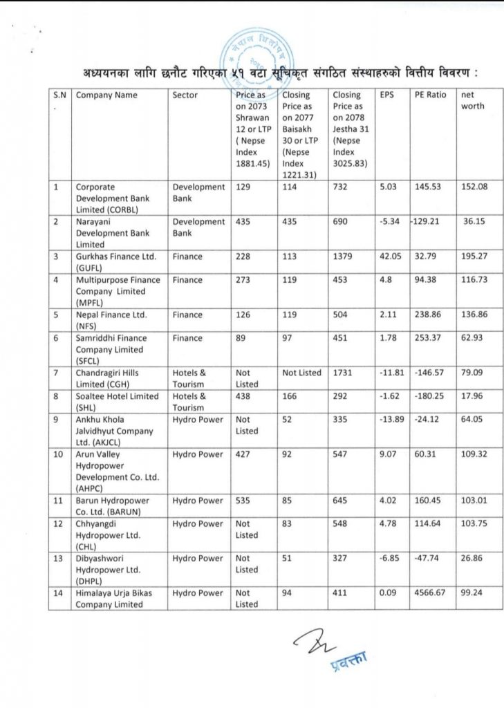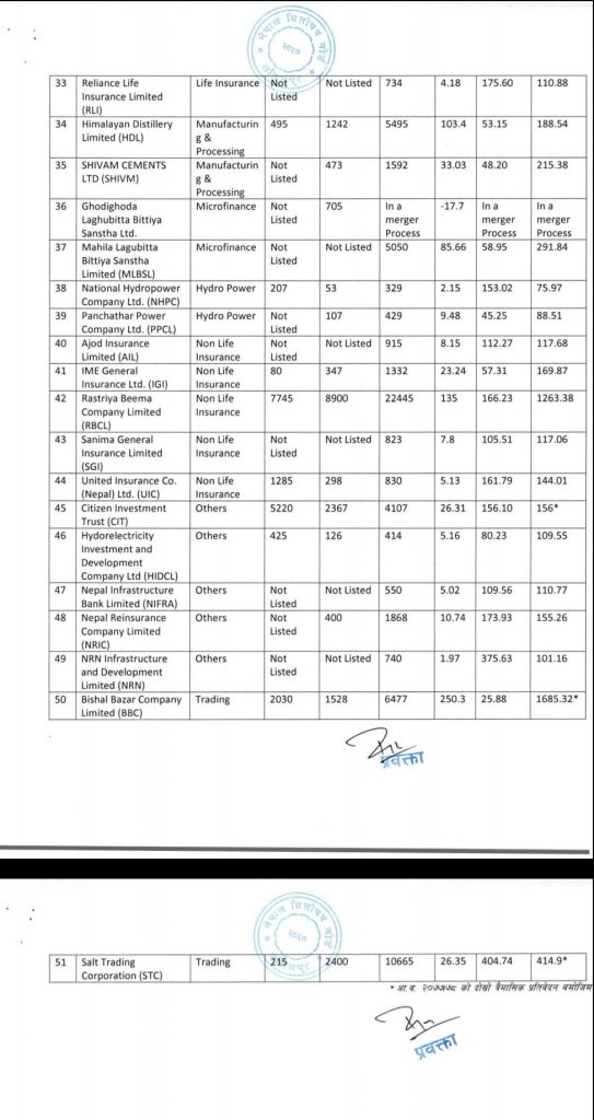 कम्पनीको सेयरमा अस्वभाविक चलखेल (५१ वटा कम्पनीको नामवली सहित)