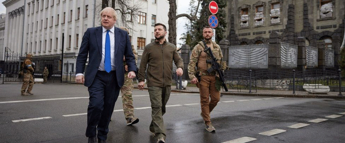 बेलायती प्रधानमन्त्री जोनसन शनिबार पूर्वघोषणाबिनै युक्रेनको राजधानी किभ पुगेर युक्रेनका राष्ट्रपति जेलेन्स्कीसँग भेटवार्ता गरेका हुन् । बीबीसीका अनुसार उनले रूसी आक्रमणविरूद्ध जेलेन्स्कीको नेतृत्व र युक्रेनी जनताले देखाएको बहादुरीको प्रशंसा गर्दै बेलायतले थप सैन्य सहायता दिने घोषणा गरेका छन् ।