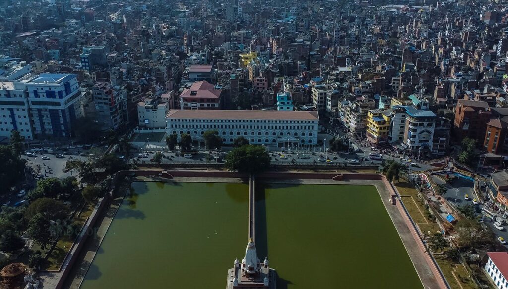 काठमाडौंमा रानीपोखरीको पश्चिमपट्टि छ दरबार हाइस्कुल।