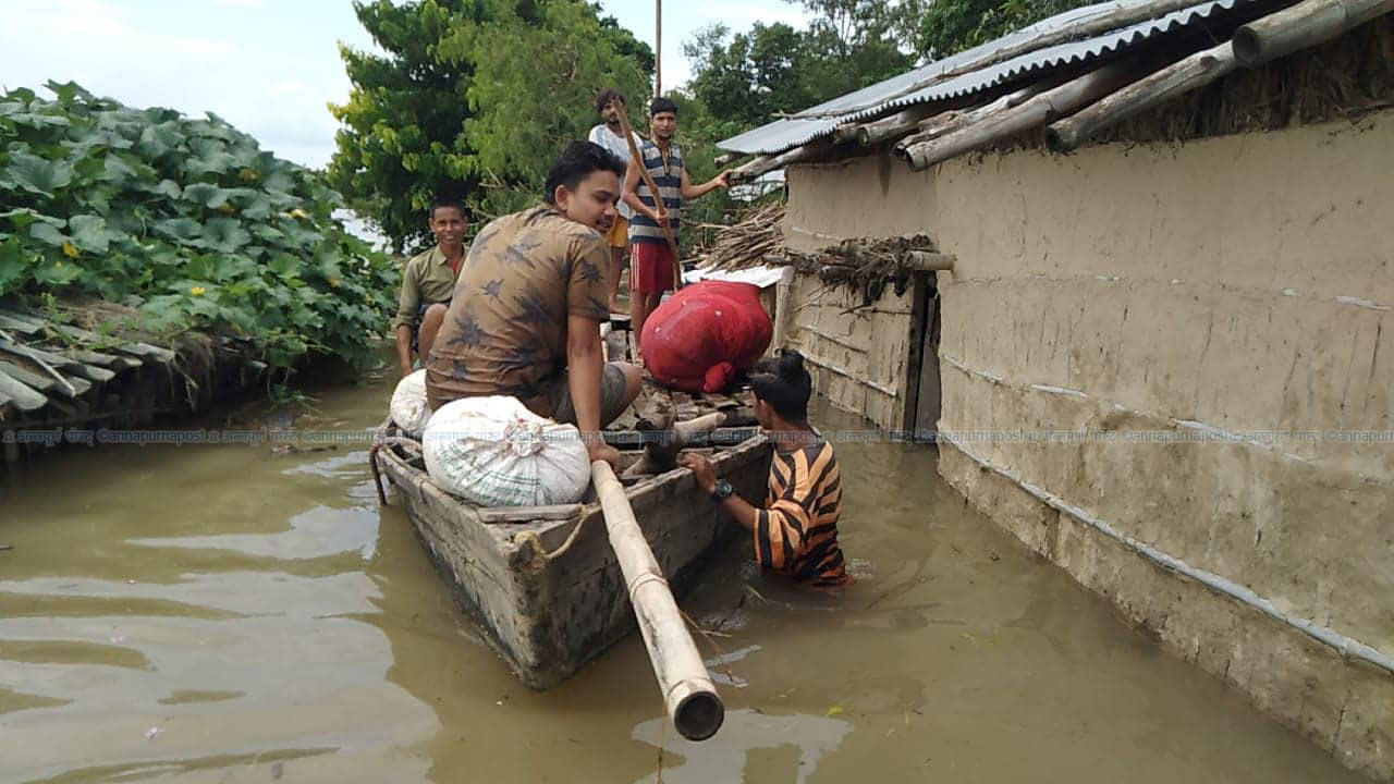 शनिबार विस्थापित भएकी तुल्सादेवी धमालाको परिवार पनि अझै घर फर्कन सकेको छैन। उनीहरू पनि वस्तुभाउसहित सडकमा बसेका छन्। विस्थापित नागरिकले गाइभैँसी सडकमा भोकै बाँध्नुपरेको छ। बाढीले धानबाली नष्ट गर्नुका साथै घासपातसमेत नष्ट भएको छ। यसले वस्तुभाउ पालकलाई बढी समस्या भएको छ।