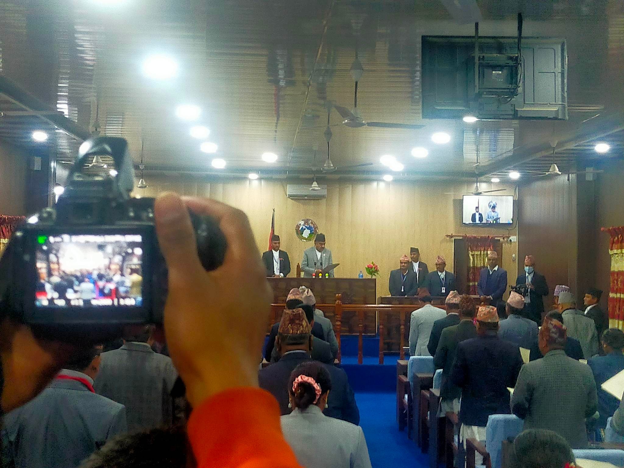 प्रदेश सभा सचिवालयले नागरिक उन्मुक्ति पार्टीका ५ र नेपाली कांग्रेसबाट निर्वाचित १ जनाले पद तथा गोपनीयताको शपथ स्थानीय भाषामा लिएका छन्।