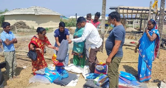 सर्लाही । सर्लाहीको बागमती नगरपालिका ३ का आगलागीपीडितलाई कपडा र खाद्यान्नसहित राहत सामग्री सहयोग प्राप्त भएको छ ।