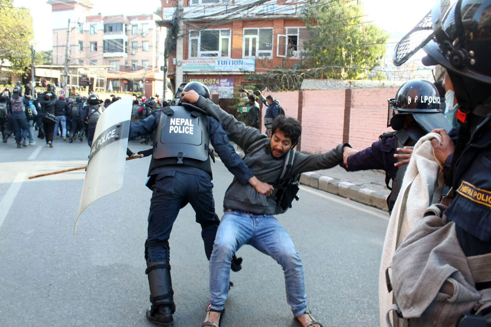 १२ माघ, काठमाडौं । प्रतिनिधिसभा विघटनको विरोधमा निकालिएको नागरिक मार्चमा प्रहरीले हस्तक्षेप गरेको छ ।