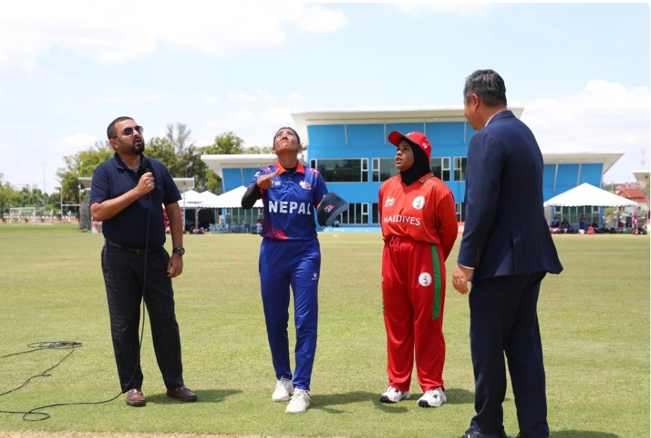 नेपालगन्ज : एसीसी महिला प्रिमियर कप क्रिकेट प्रतियोगितामा नेपाली महिला क्रिकेट टोलीले माल्दिभ्सविरुद्ध शानदार प्रदर्शन प्रदर्शन गरिरहेको छ । नेपालले प्रस्तुत गरेको २ सय २८ रनको लक्ष्य पछ्याउने क्रममा १० ओभरको खेल समाप्त हुँदा १० रन बनाउँदै ७ विकेट गुमाएको हो ।
